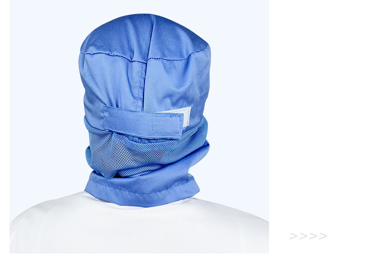 帽子付きの白衣のチェーンタイプの食品工場の作業服は通気性がよくて、生産加工工場の青見学服工場です。