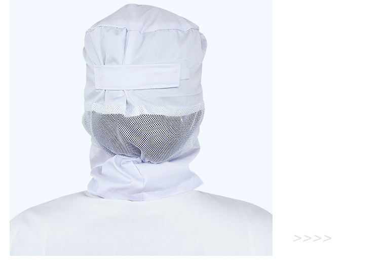 食品工場作業服フード付きスプリット白長袖食品服工場加工現場男女耳網通気耳輪