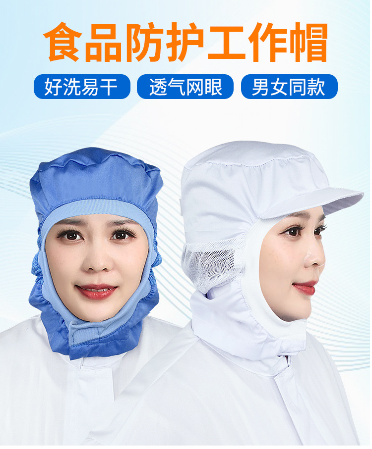 轩之新工厂车间食品厂工作帽披肩帽披风头套防尘帽工帽网帽透气