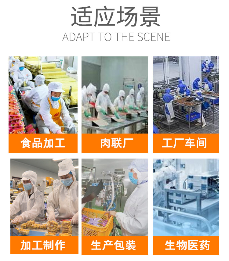食品工場作業服フード付き長袖食品服工場加工現場男女労働者白青通気