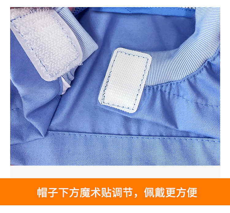 静電気防止白衣食品工場作業服青連帽通気洗浄作業服工場加工男女ロゴ定