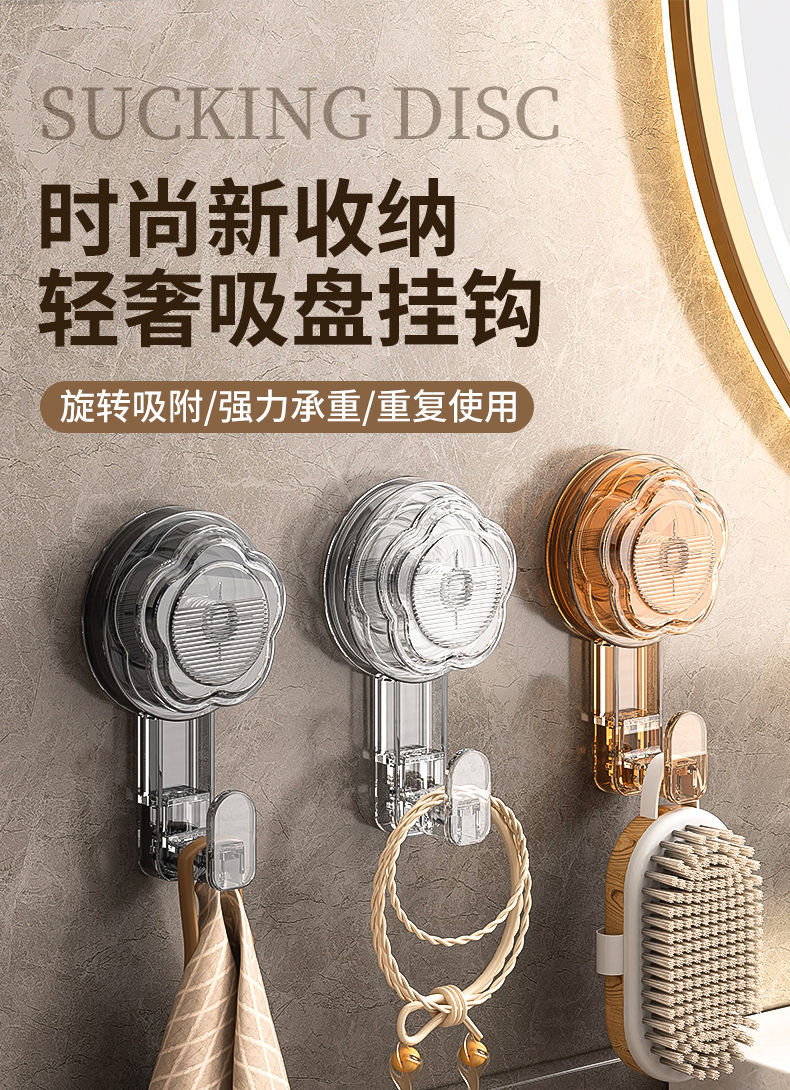 轻奢吸盘挂钩免打孔浴室无痕真空强力粘胶卫生间贴墙承重毛巾粘钩