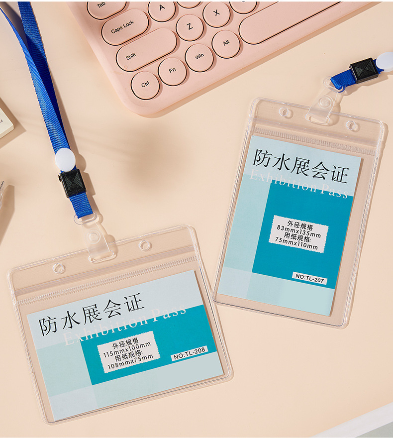 メーカー卸売り胸カードカバー防水カードpvc透明軟質カードカバー展示会証作業カード学生カードカバーストラップ