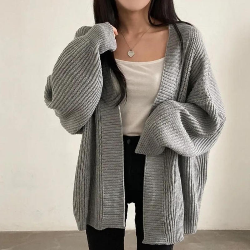 外国貿易元宝ニットミッドレングスセーター女性のための秋と冬無地ルーズバージョンカジュアルレイジースタイル多用途ニットカーディガン