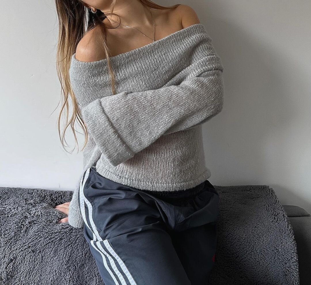 欧米クロスボーダー秋冬新作純欲風セクシーファッションギャル上着ラッパ袖一字肩メリヤスセーター