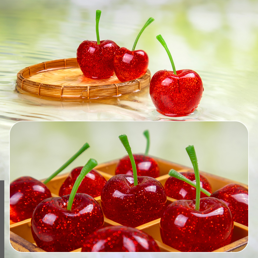 创意细闪樱桃仿真水果滴油手工树脂工艺品萌粒装饰车载桌面小摆件