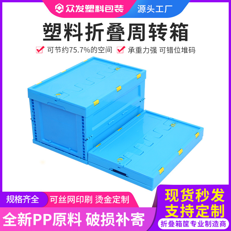 青いプラスチック折りたたみボックスターンオーバーボックス大型折りたたみ収納ボックス肥厚プラスチック産業物流収納ボックス