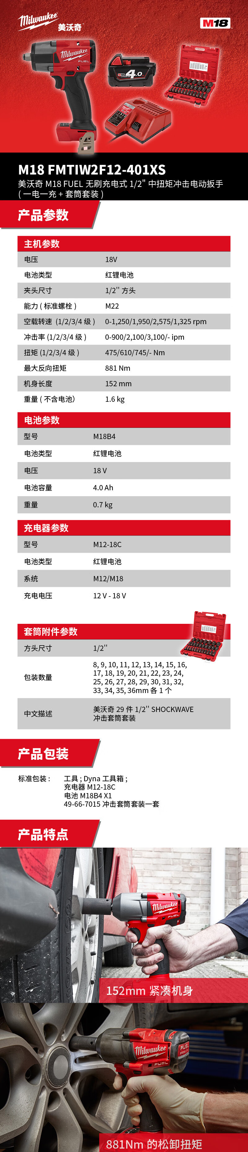 ミウォッチミーウォッチM18 FMTIW2F12-401XS M18フューエルブラシレス充电式1/2ミドルトルク