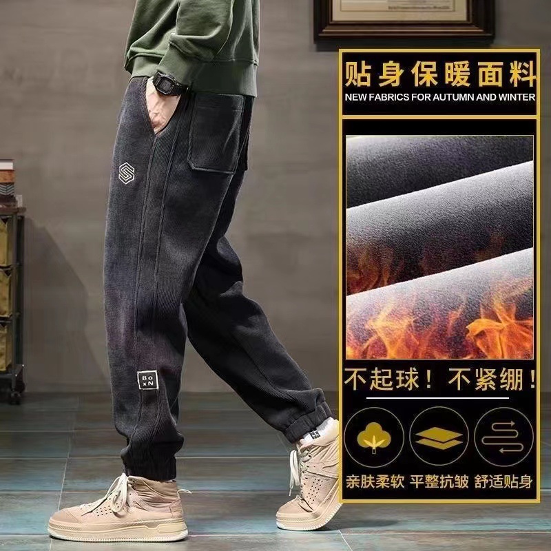 秋冬ベルベット厚みのあるラムベルベットスポーツパンツ暖かい綿パンツメンズアウタールーズ防風防寒カジュアルパンツ