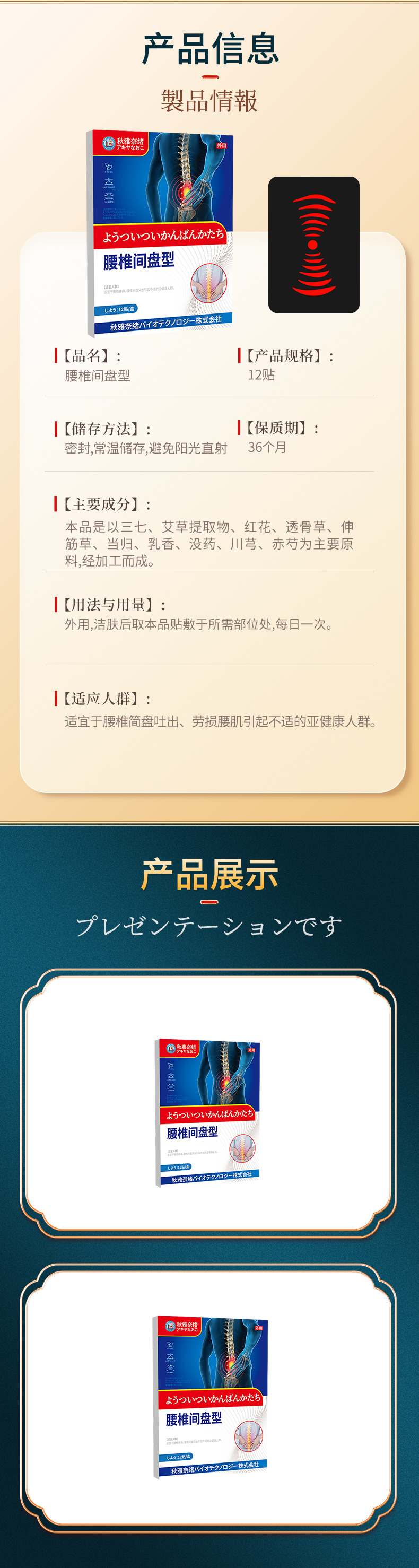 商品番号 Qiuya Naonao 腰椎椎間板パッチ 12 パッチ/箱
