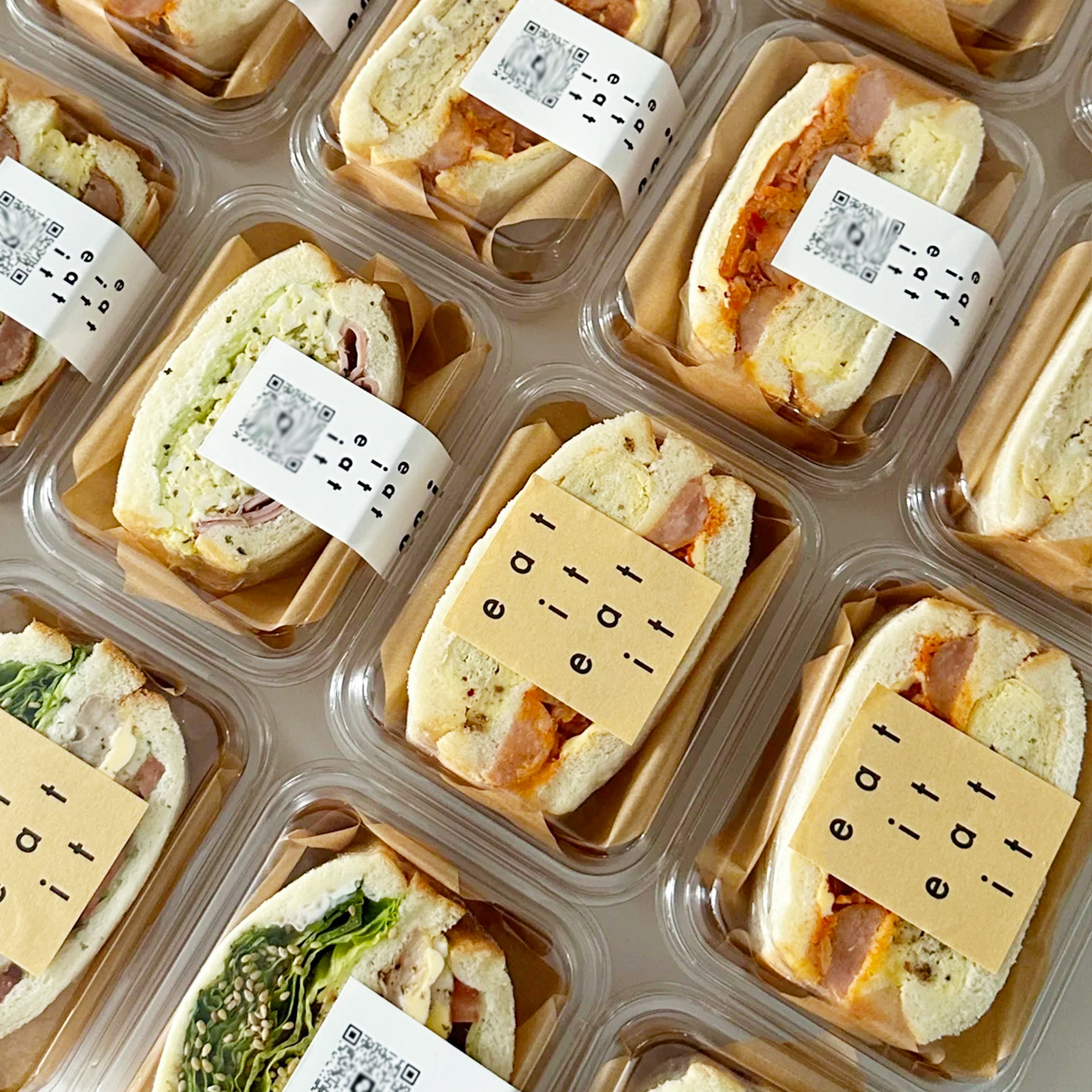 ハーフサンドイッチボックス,ハーフサンドイッチボックス+ホワイトサンドイッチステッカー,ハーフサンドイッチボックス+白HN英語ステッカー,ハーフサンドイッチボックス+ブラックHN英語ステッカー