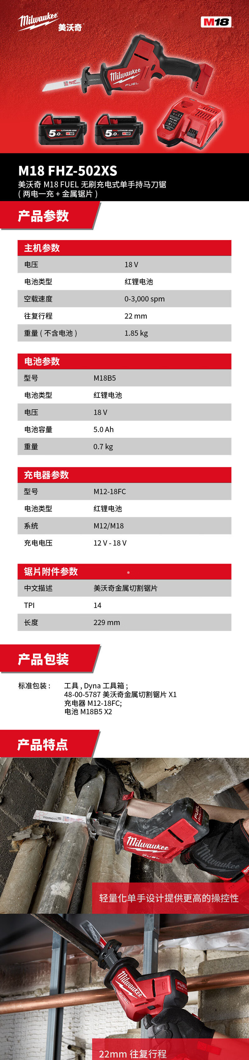 ミワチミワウチM18 FHZ-502XS M18フエルブラシレス充电式シングルハンディスナイパーソー (両)