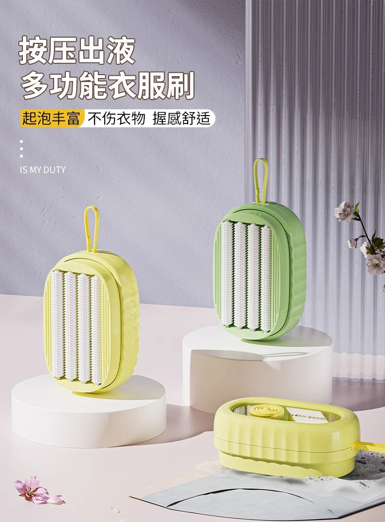 按压出液洗衣刷家用多功能软胶滚轮起泡快丰富贴身衣物内衣清洁刷