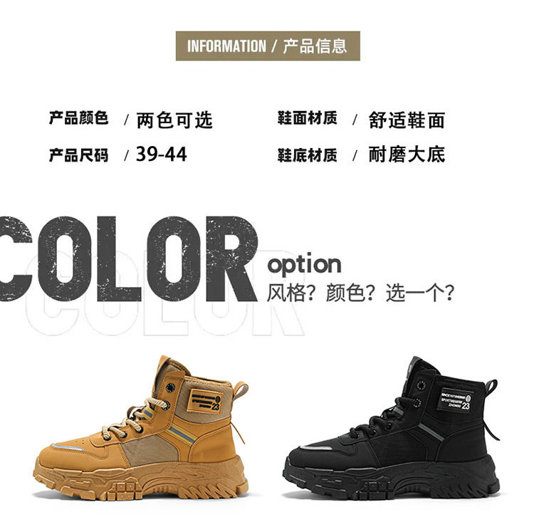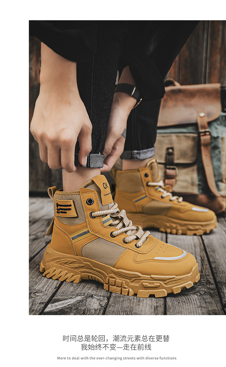 高帮男鞋秋季百搭休闲皮面工装鞋板鞋青少年登山运动厚底马丁靴男