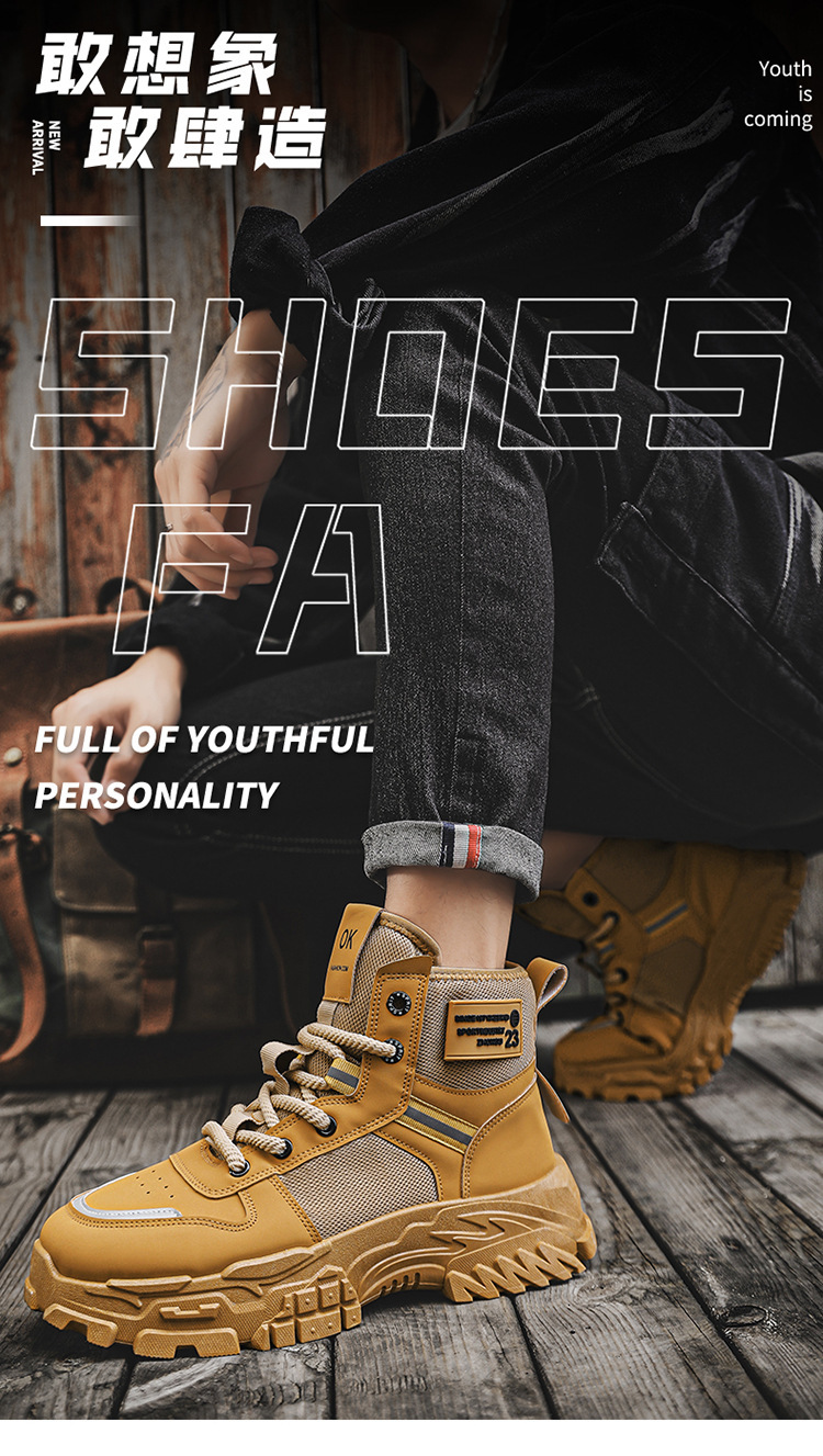 男鞋春秋款劳保鞋男士休闲运动防滑耐磨高帮工装鞋短靴休闲马丁靴