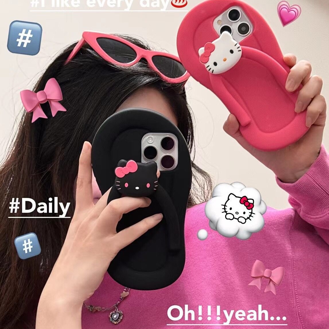卡通可爱人字拖KT猫iPhone16苹果15适用13/14pro max手机壳防摔12