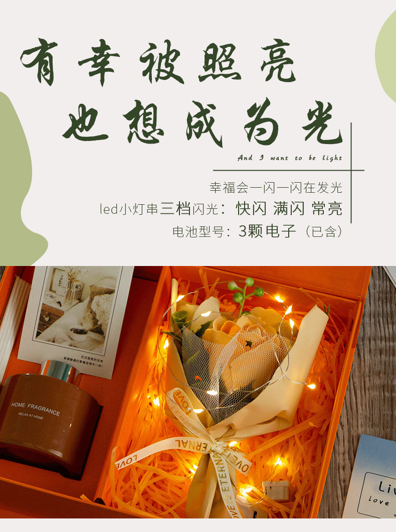 温馨提示:花束都是人工手工制作,每个批次不同,形状,大小颜色都会有所偏差,瓶子会有一点小瑕疵,盒子等一点瑕疵问题,不做为退货退款理由哦!