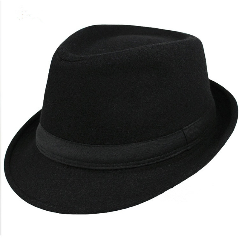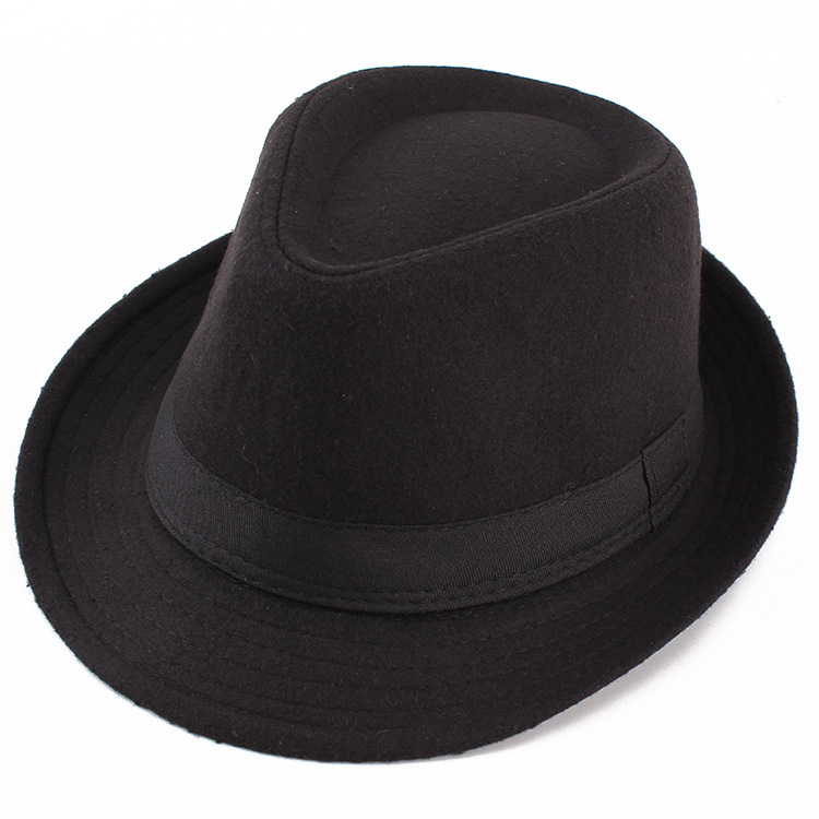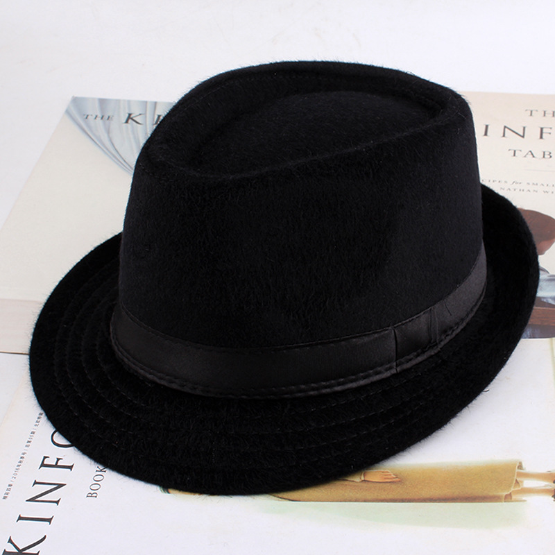 新型中高年男性ジャズハット舞踏会パーティー紳士短軒毛ラシャ帽子レトロ純色フェルト帽子