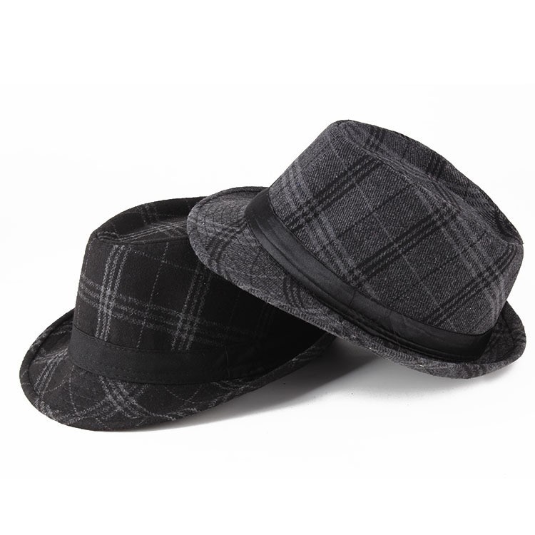秋冬の男性の帽子のフランネルの格子の生地の保温の中高年のジャズの帽子のカジュアルな帽子の男性の帽子
