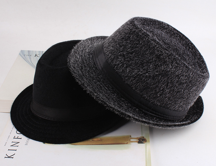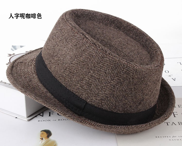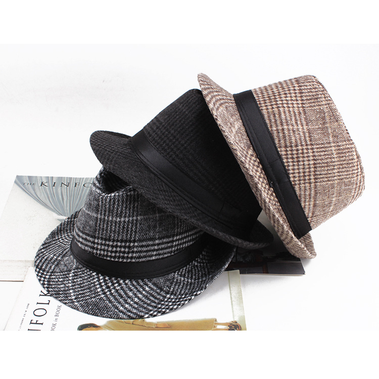 メンズシルクハット卸売秋と冬の新しいレトロ英国ファッションジャズハット中高年お父さん暖かいウール帽子