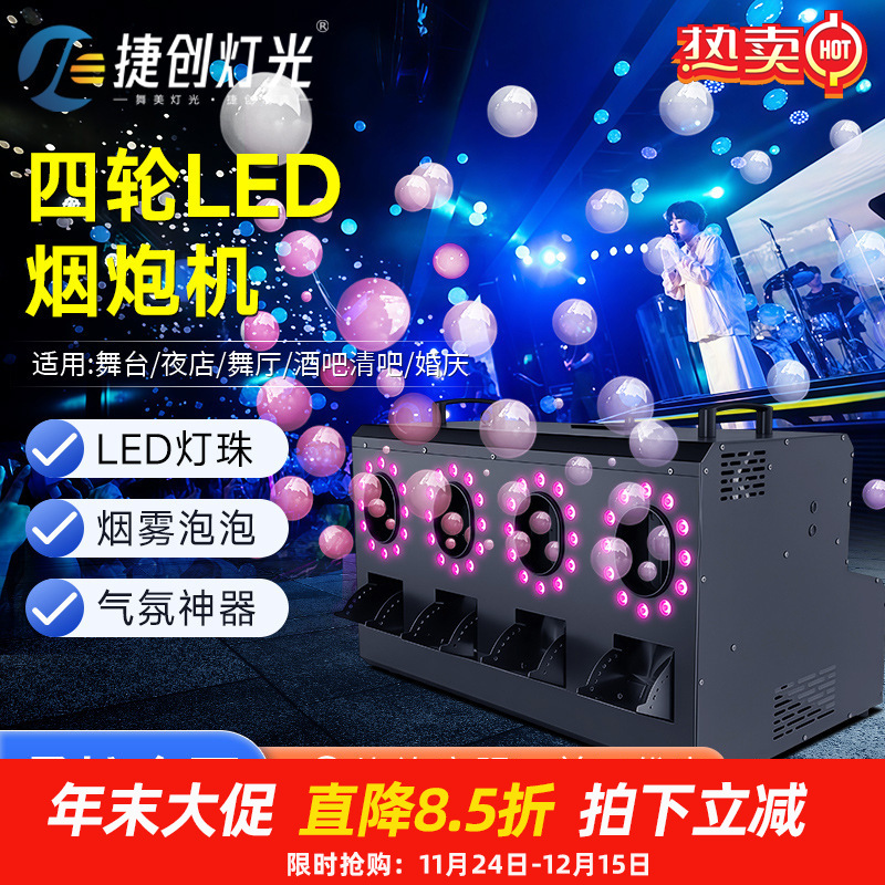 四轮LED烟雾泡炮机婚庆舞台演出特效道具烟泡一体自动双轮烟泡机