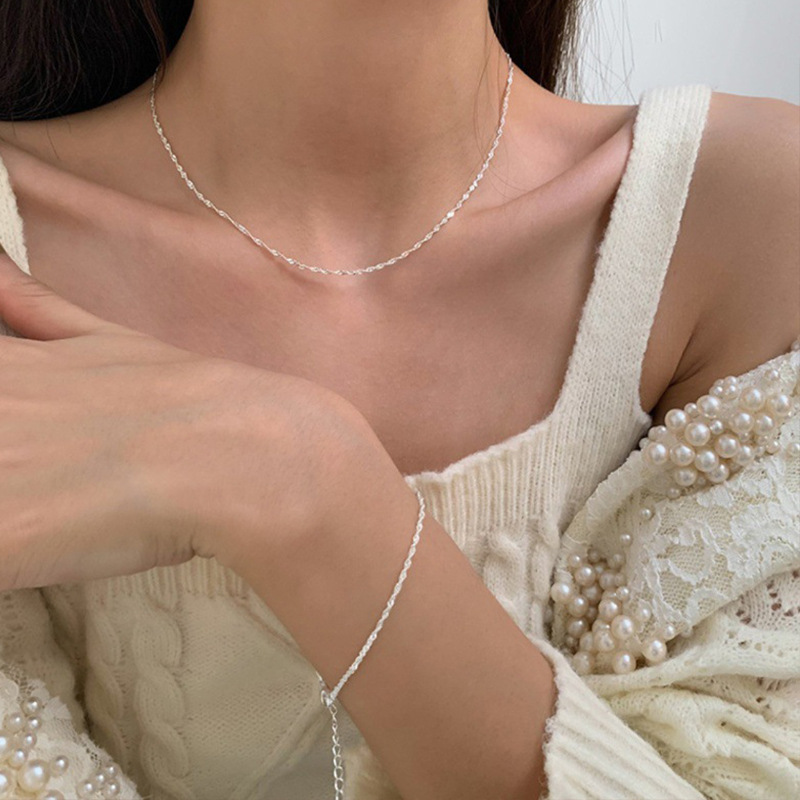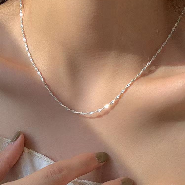 クロスボーダー テム(TEMU) 欧米風 925シルバーメッキ ネックレス 曲線ツイストウォーターチェーン 鎖骨チェーン ネックチェーン メンズアクセサリー ショートタイプ