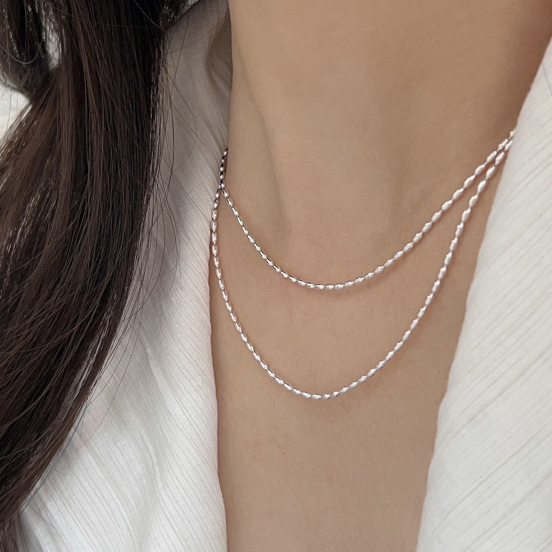 Chenheng S925 スターリングシルバーオリーブビーズチェーンネックレス、女性用、2025年夏、多用途、軽くて豪華、コールドスタイル、鎖骨チェーン