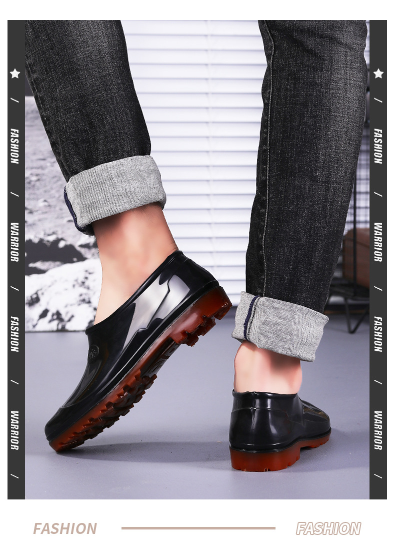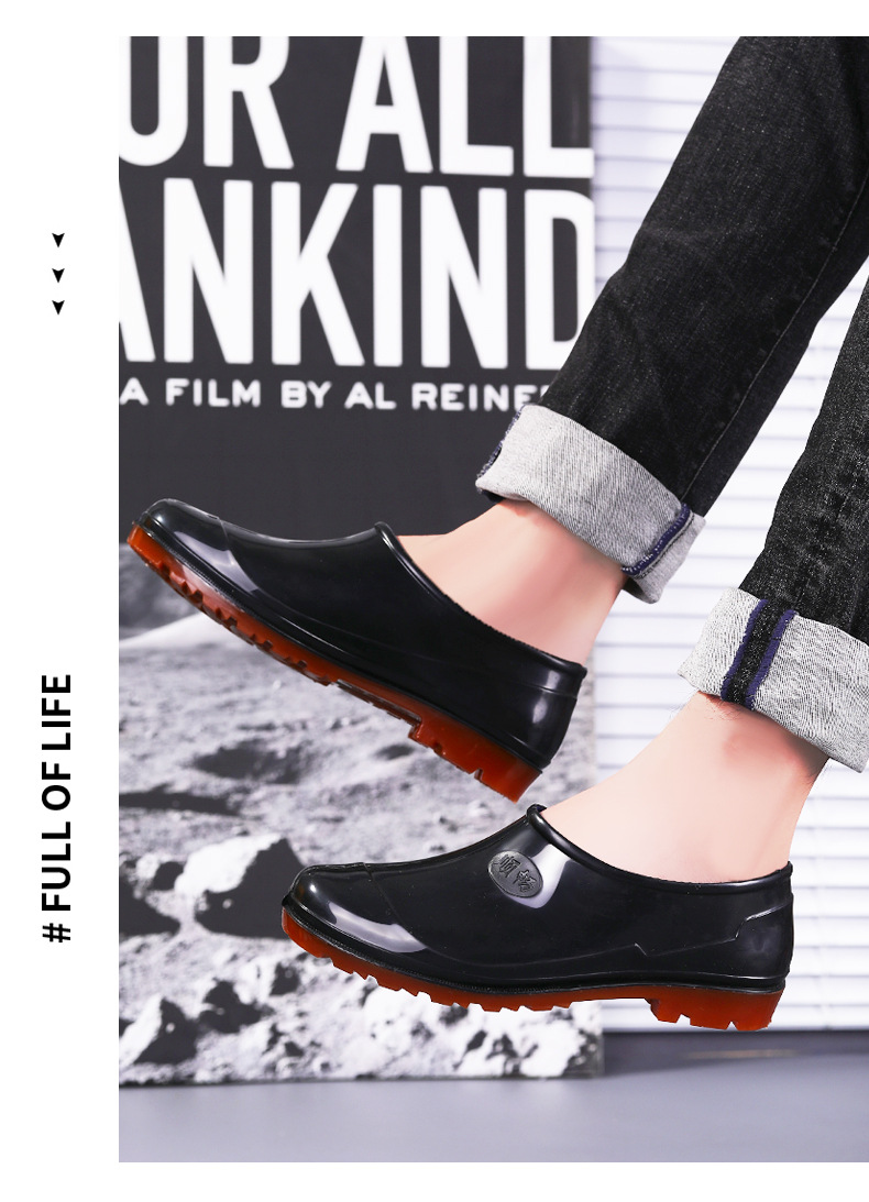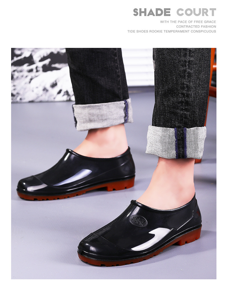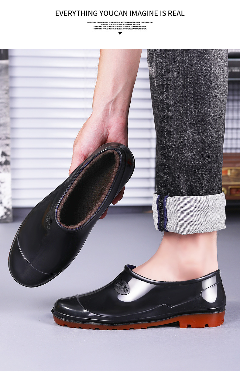 春秋の靴の男の低い靴の浅い口の靴の雨の日の滑り止めの1足のゴムの靴のお父さんの屋外の渉水の料理人の靴