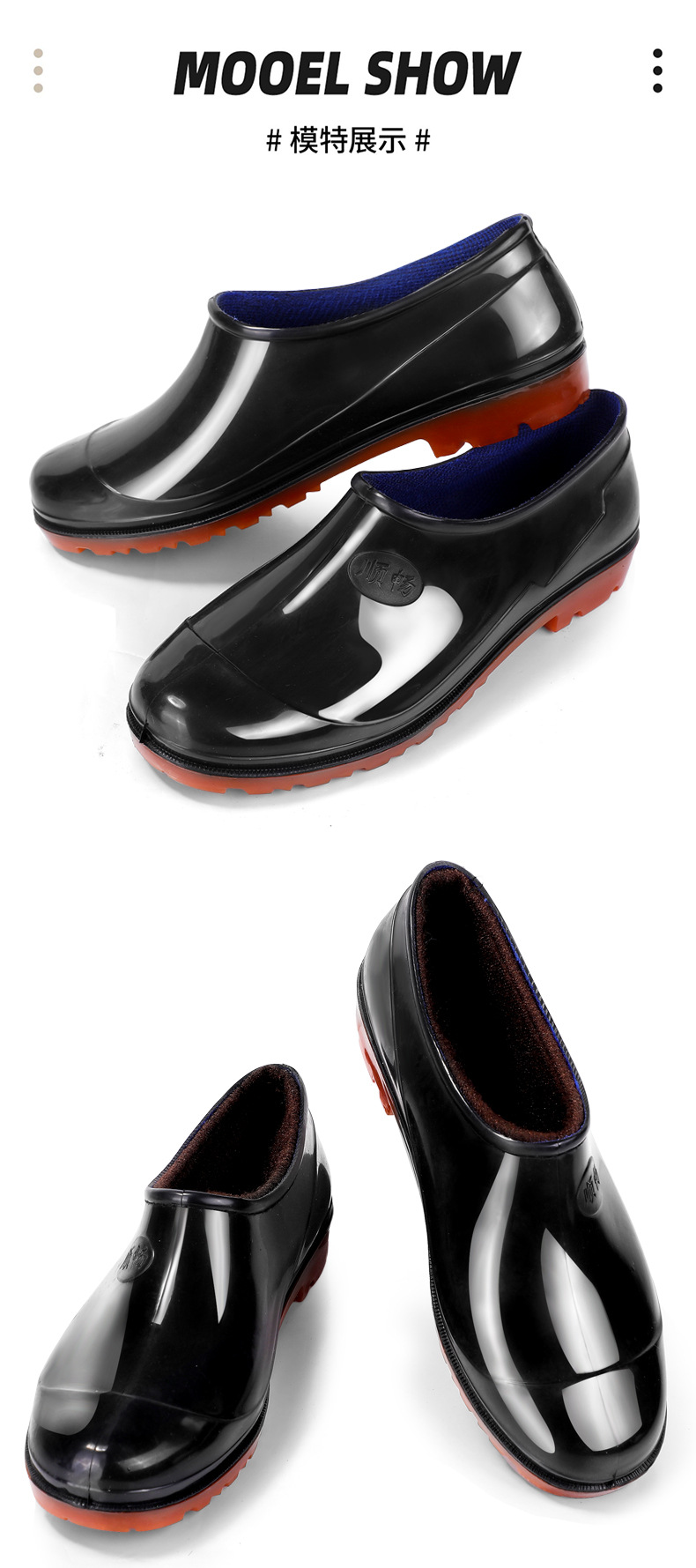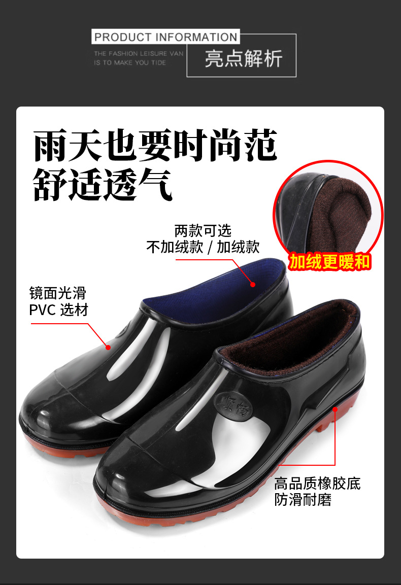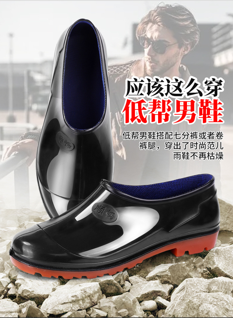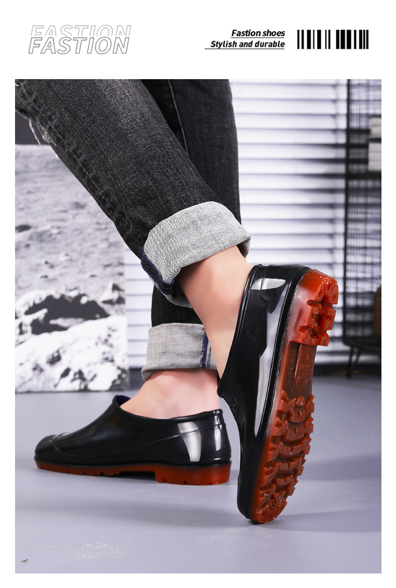 春秋の靴の男の低い靴の浅い口の靴の雨の日の滑り止めの1足のゴムの靴のお父さんの屋外の渉水の料理人の靴