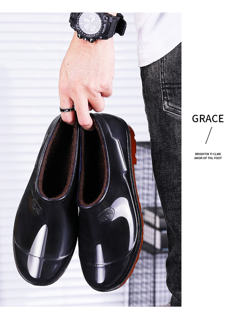 軍登低筒男雨靴厨房短筒水靴オックスフォード底滑り止めゴム靴労働保護靴と綿カバー足男水靴