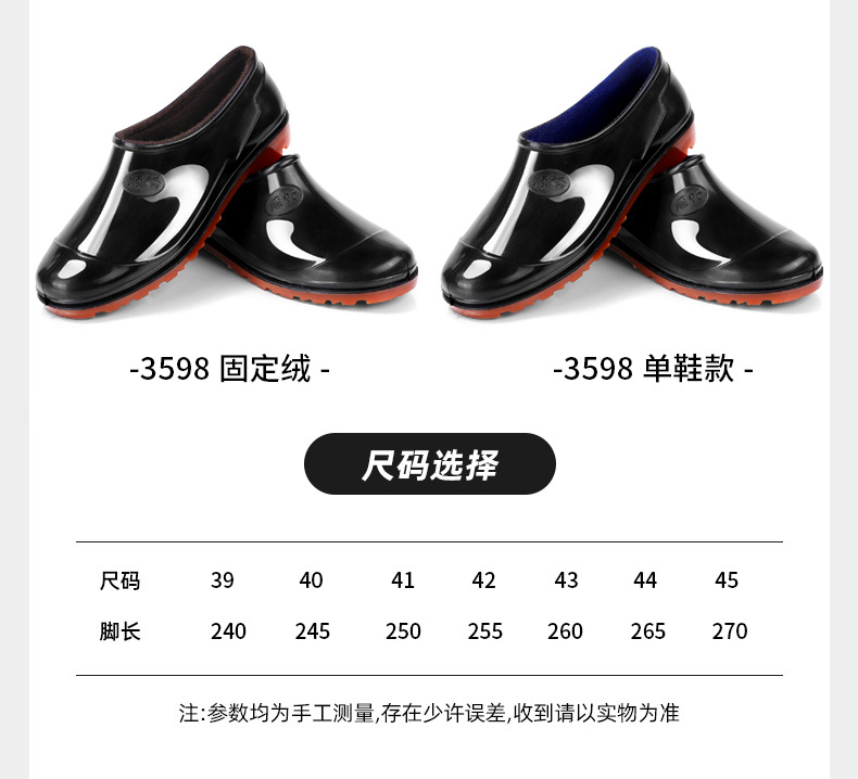 玉訓双回低助男雨靴黒防水靴迷彩ゴム靴春秋水靴厨房男女綿工靴