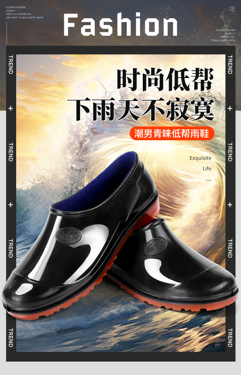 韓国版新型雨靴男性ファッションクール短筒雨靴アウトドア旅行渉水ゴム靴滑り止め防水靴男性カバー靴