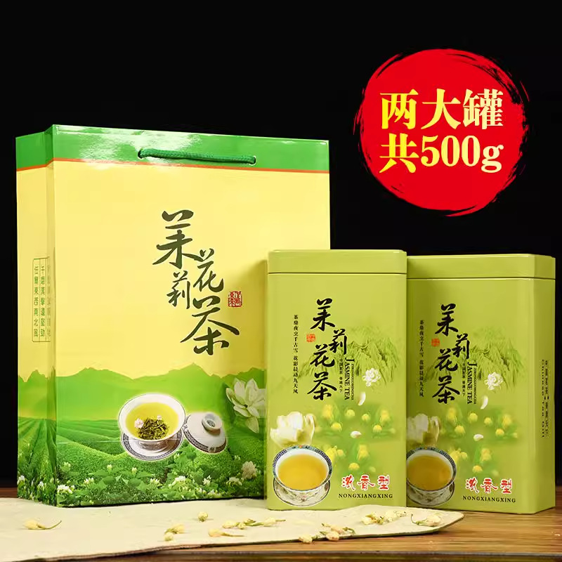 新ジャスミン茶葉 自分で飲む 500g 緑茶 濃い香り 缶詰 高級ギフトボックス 高齢者への贈り物