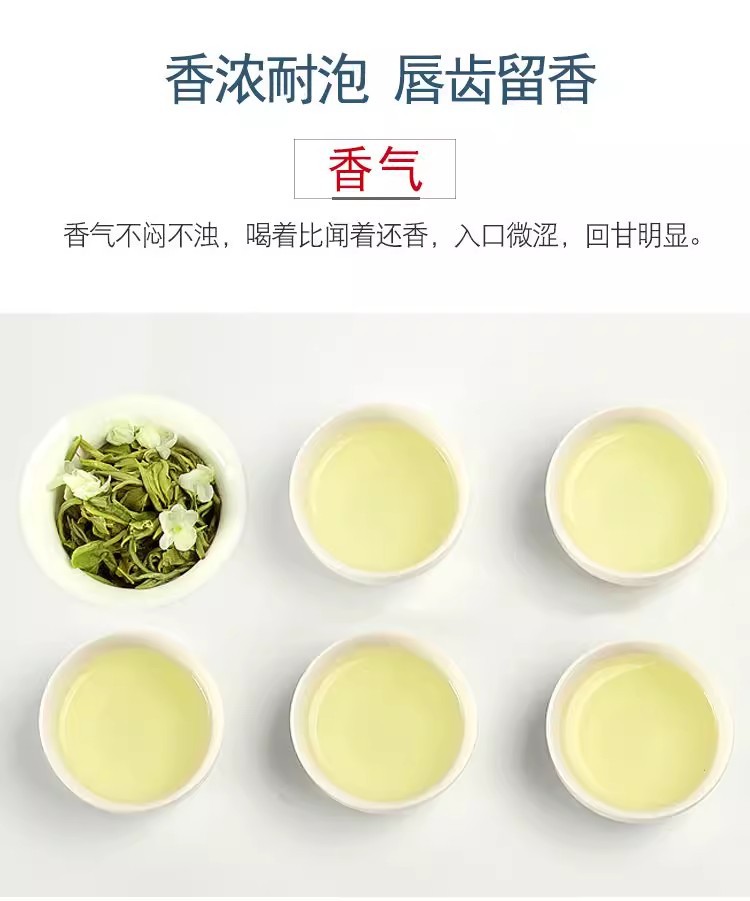 2023ジャスミン茶新茶横県緑茶ジャスミン白っぽい香りが漂っています。