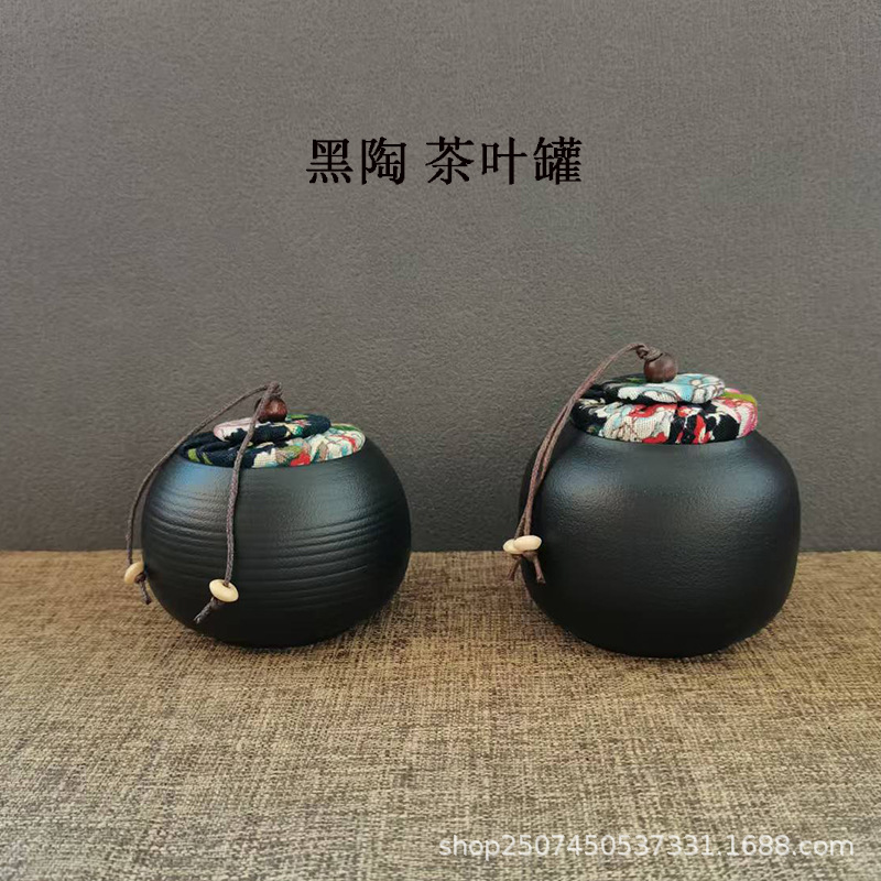 黒陶茶葉缶密封貯蔵缶のアイデアがかわいい便利な日本式陶磁器防湿家庭用ドライフルーツ缶