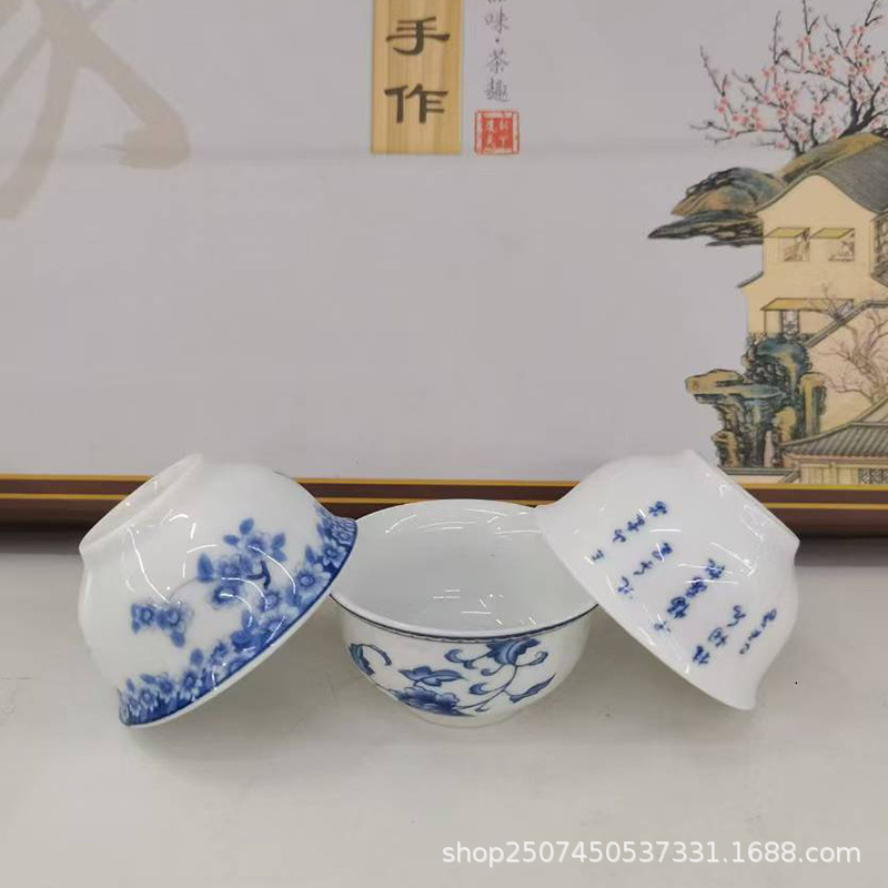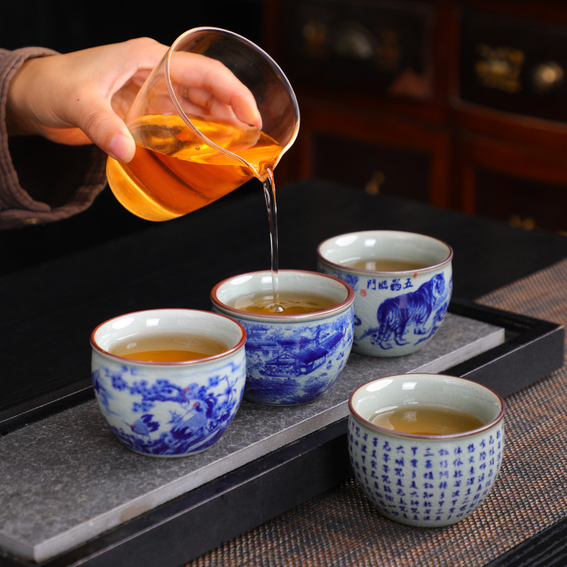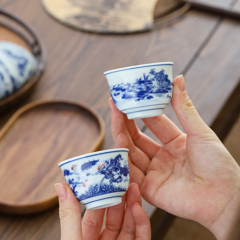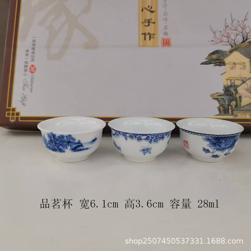 青花磁器釉薬下彩中国式品茗杯工夫茶器シンプルな家庭用ティーカップティーカップ主人カップバッチ