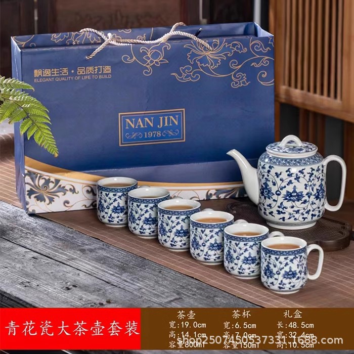 新型青花磁器大ティーポットセットカンフー茶器陶磁器家庭用オフィスティーポット大容量中国式レトロ