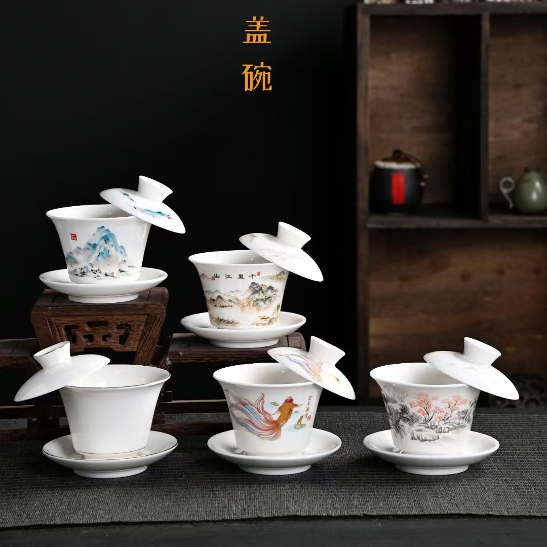ホバリング三才蓋茶杯陶磁器工夫茶具家庭用個人専用泡茶碗大サイズ白磁羊脂玉