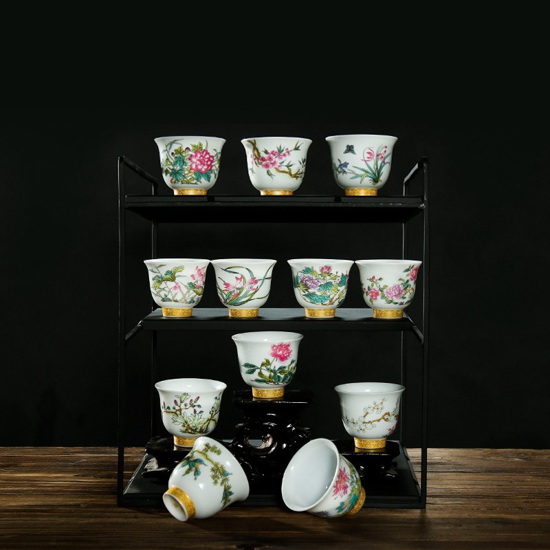 十二花神杯陶磁器茶道具康熙五彩故宮個人品茗杯工夫茶杯セット家庭用プレゼント