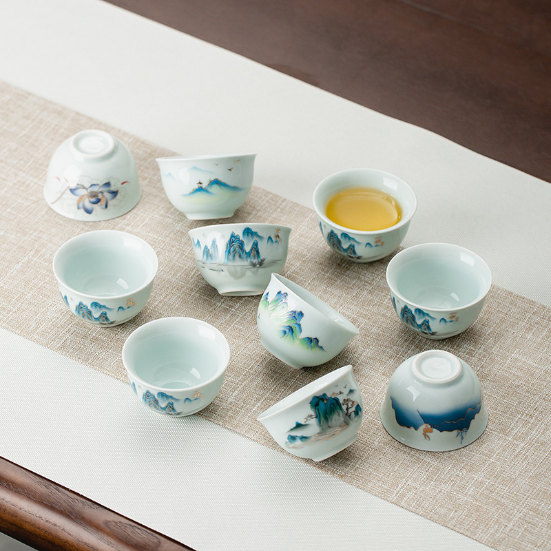青瓷功夫茶具陶瓷单杯山水图茶杯主人杯品茗杯泡茶杯茶盏厂家批发