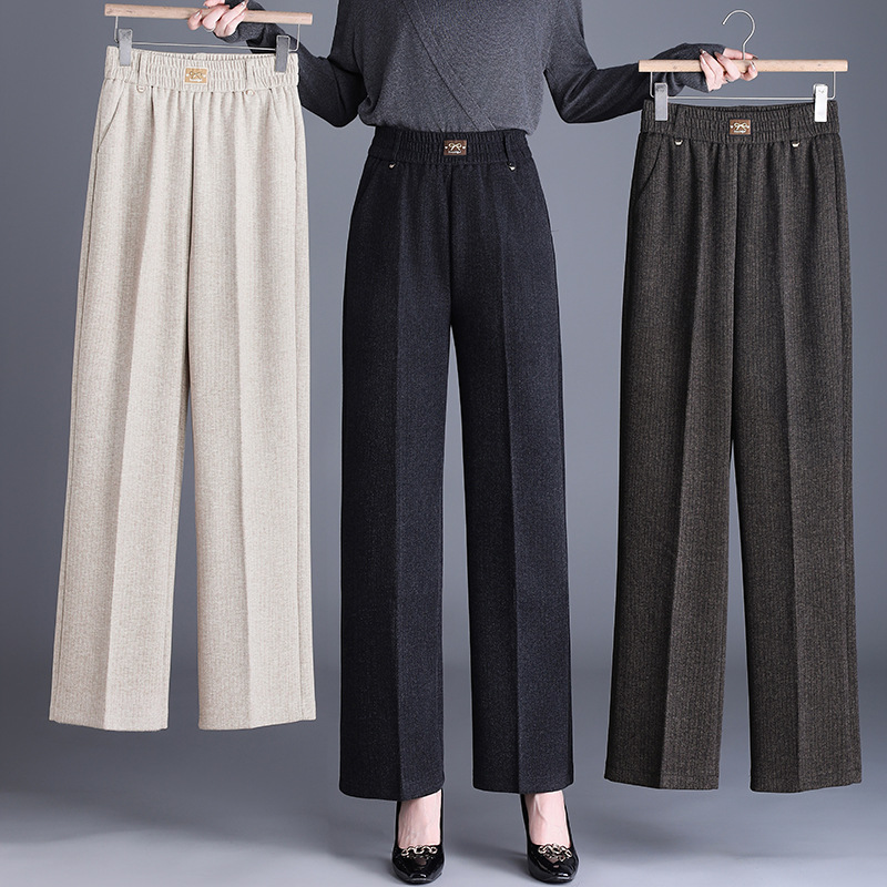 女士春秋冬简约气质通勤长裤女款冬季厚款休闲直筒裤中老年休闲裤