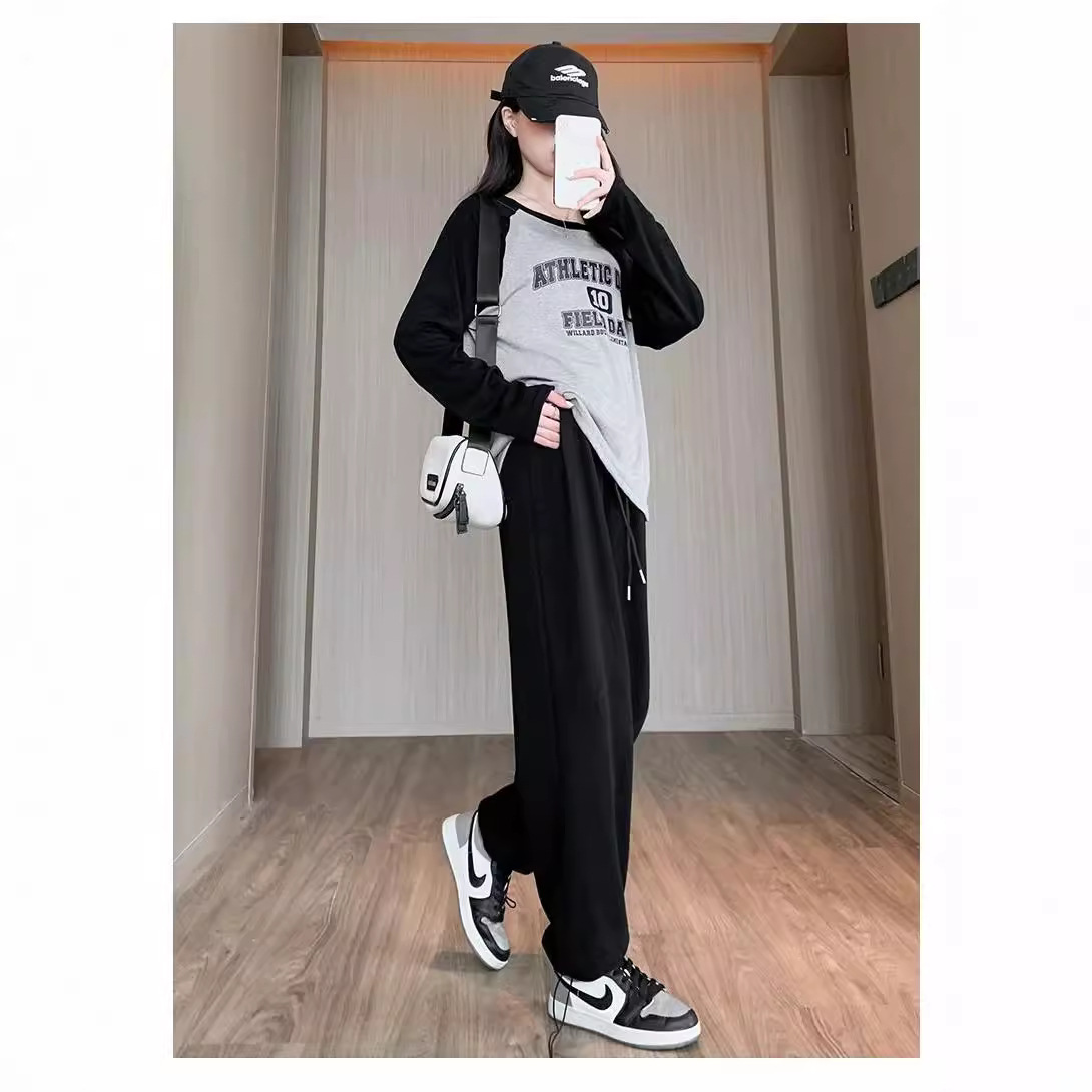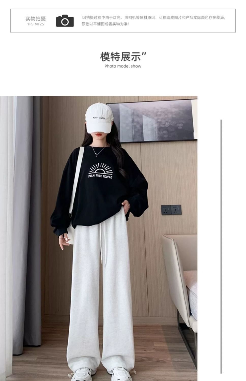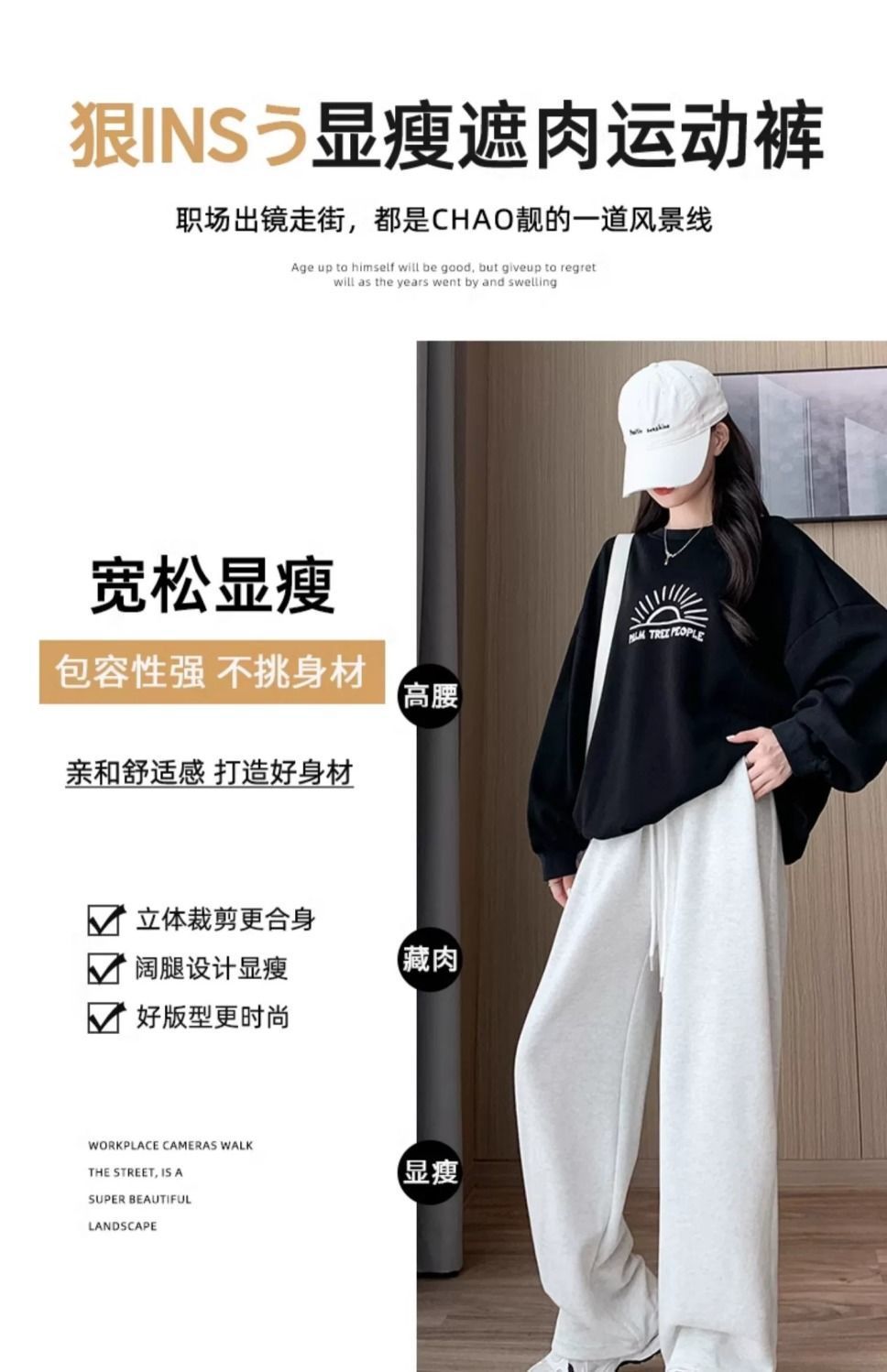 グレーのスポーツパンツの女性秋冬2024の新型のゆったりした高腰のワイドパンツの小さい子供のカジュアルな百合のストレートの衛のズボン