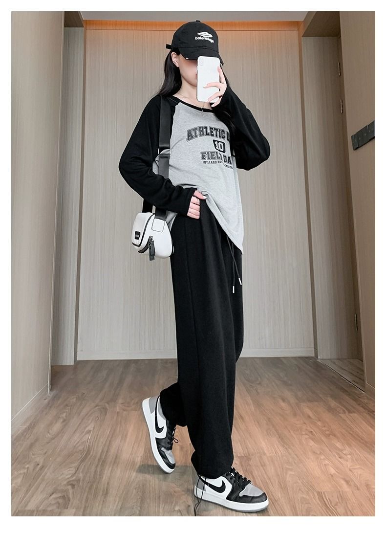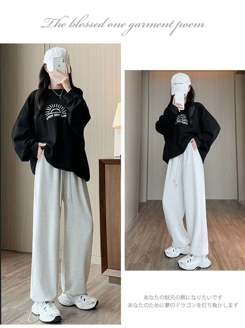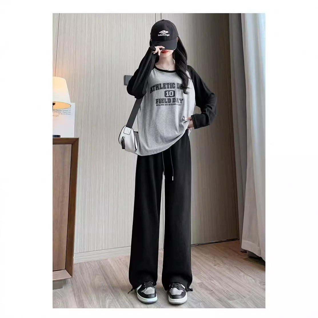 グレーのスポーツパンツの女性秋冬2024の新型のゆったりした高腰のワイドパンツの小さい子供のカジュアルな百合のストレートの衛のズボン