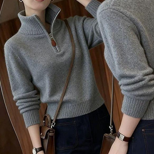 极简风灰色半拉链立领短款毛衣女秋冬新款小众不撞款针织上衣秋季