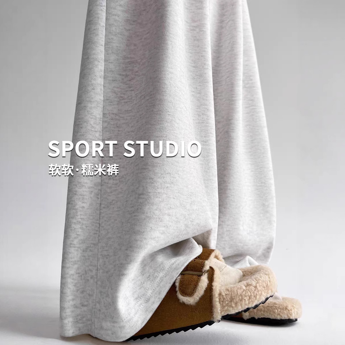 スポーツパンツ女性秋冬2024新型高腰カジュアルゆるいストレートアメリカ風ベルベット広脚白灰色衛ズボン