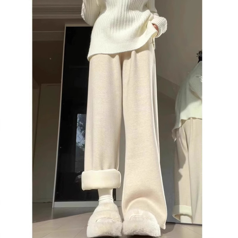 秋冬厚手2025新作シルバーフォックスベルベットソフトもち米パンツレディースハイウエストドレープカジュアルワイドパンツ裏起毛ロングパンツ