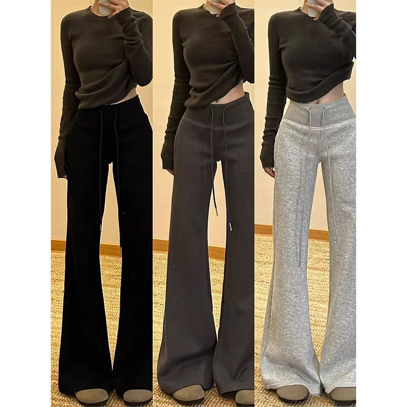 lulu喇叭运动裤女秋季新款高腰显瘦修身垂感小个子拼接微喇卫裤子