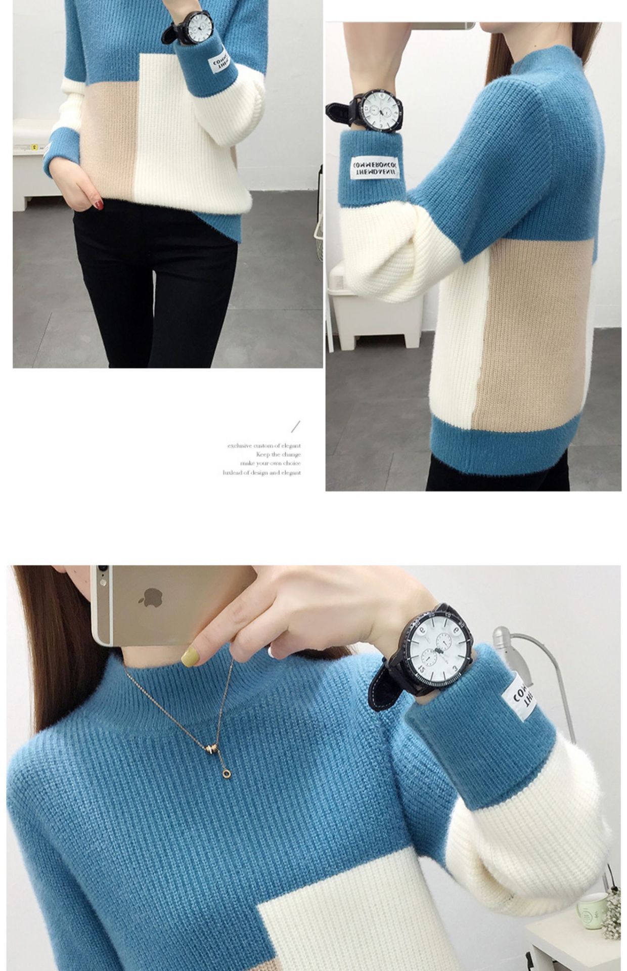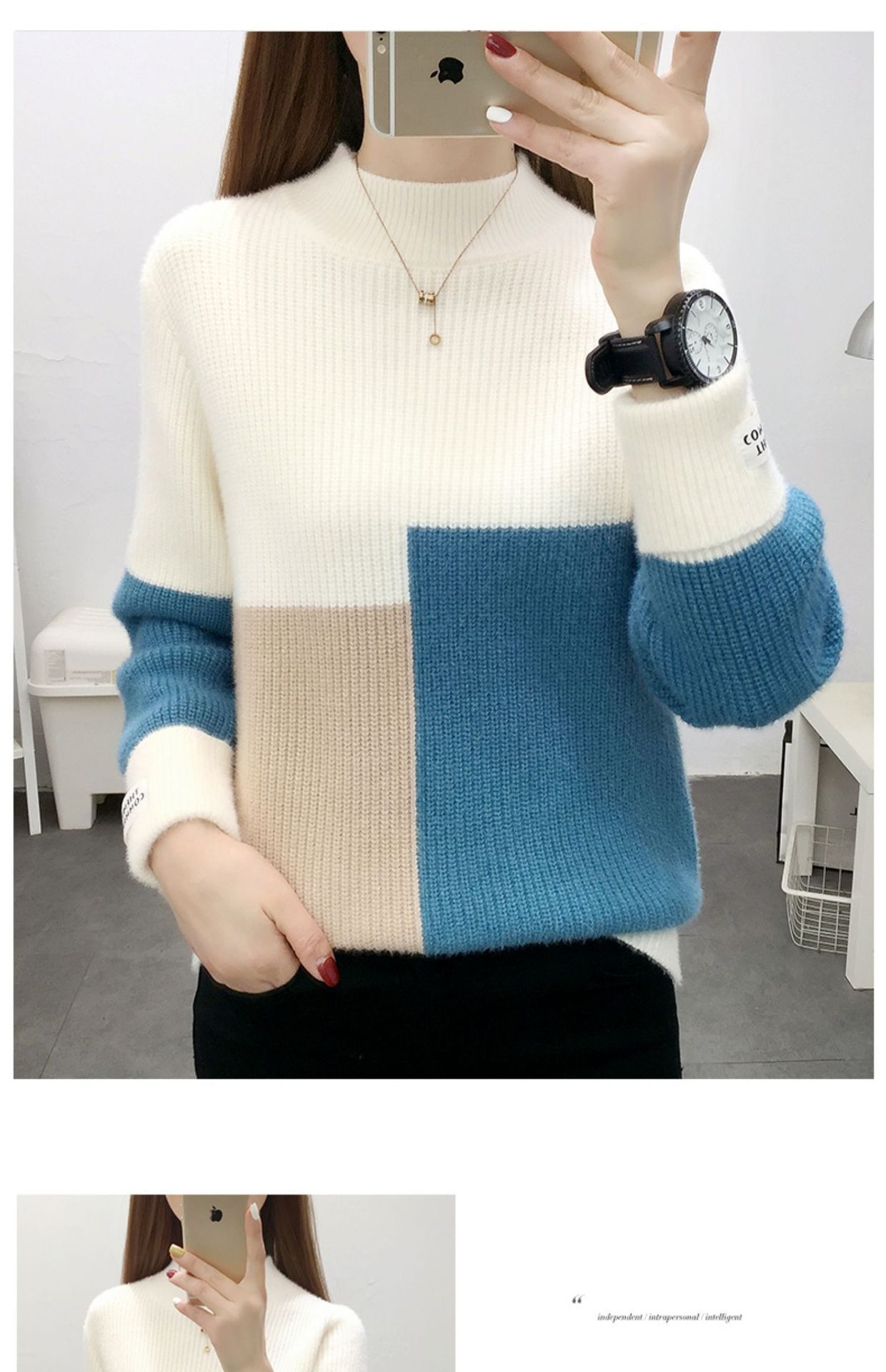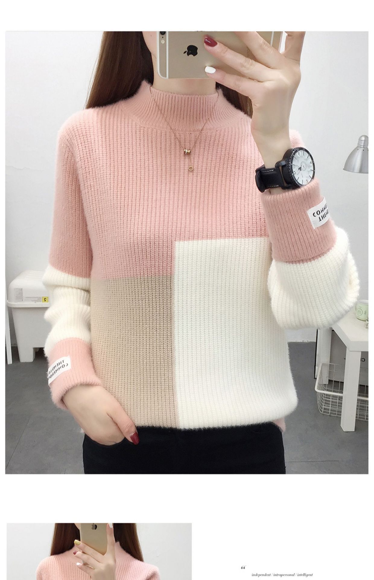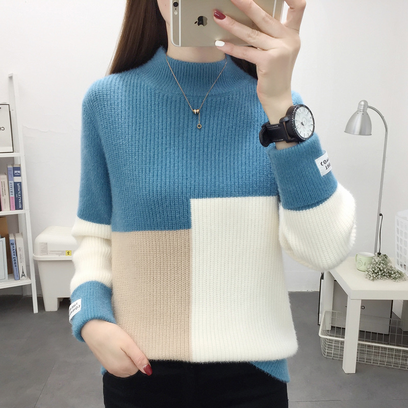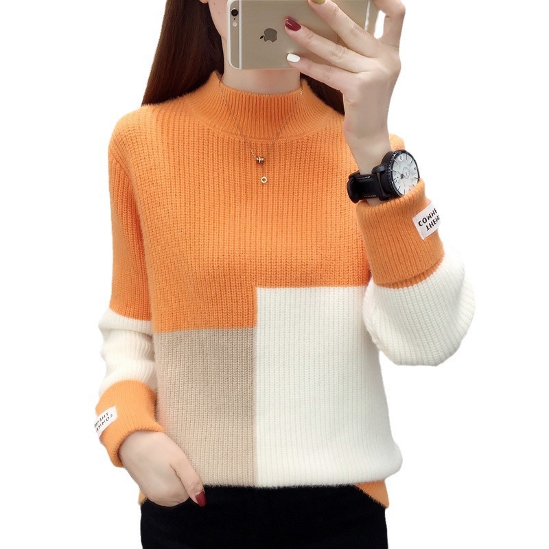 高襟セーター女性の高級日韓シンプルな純色プルオーバー2023早秋高級感ニット