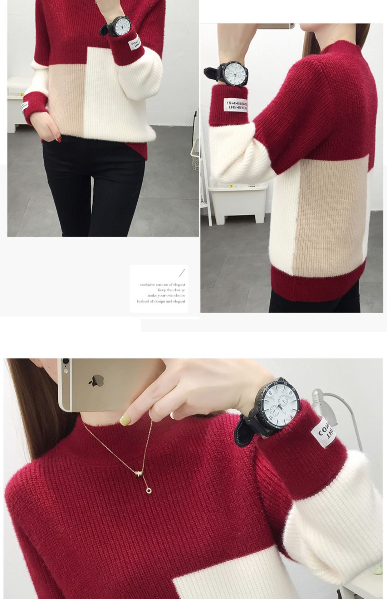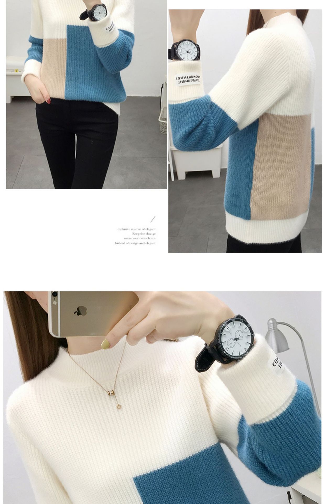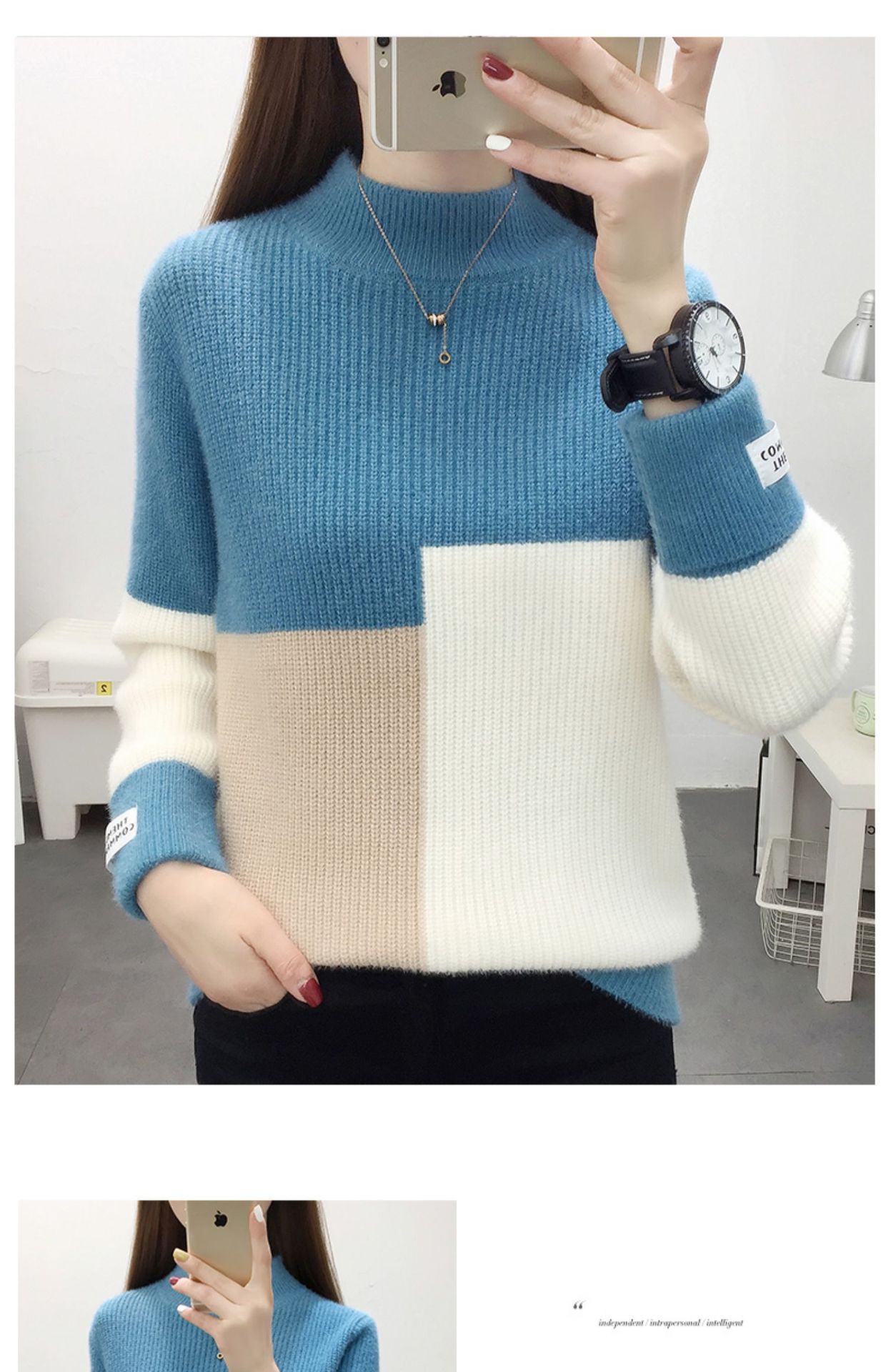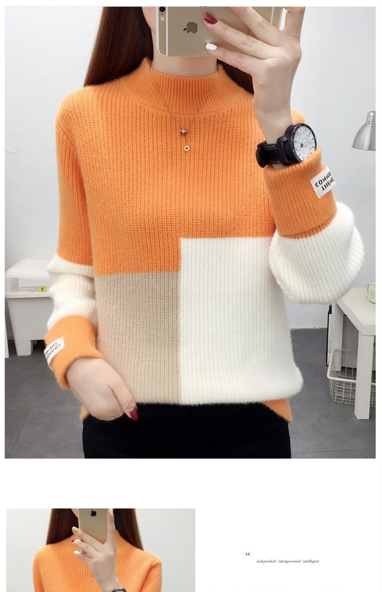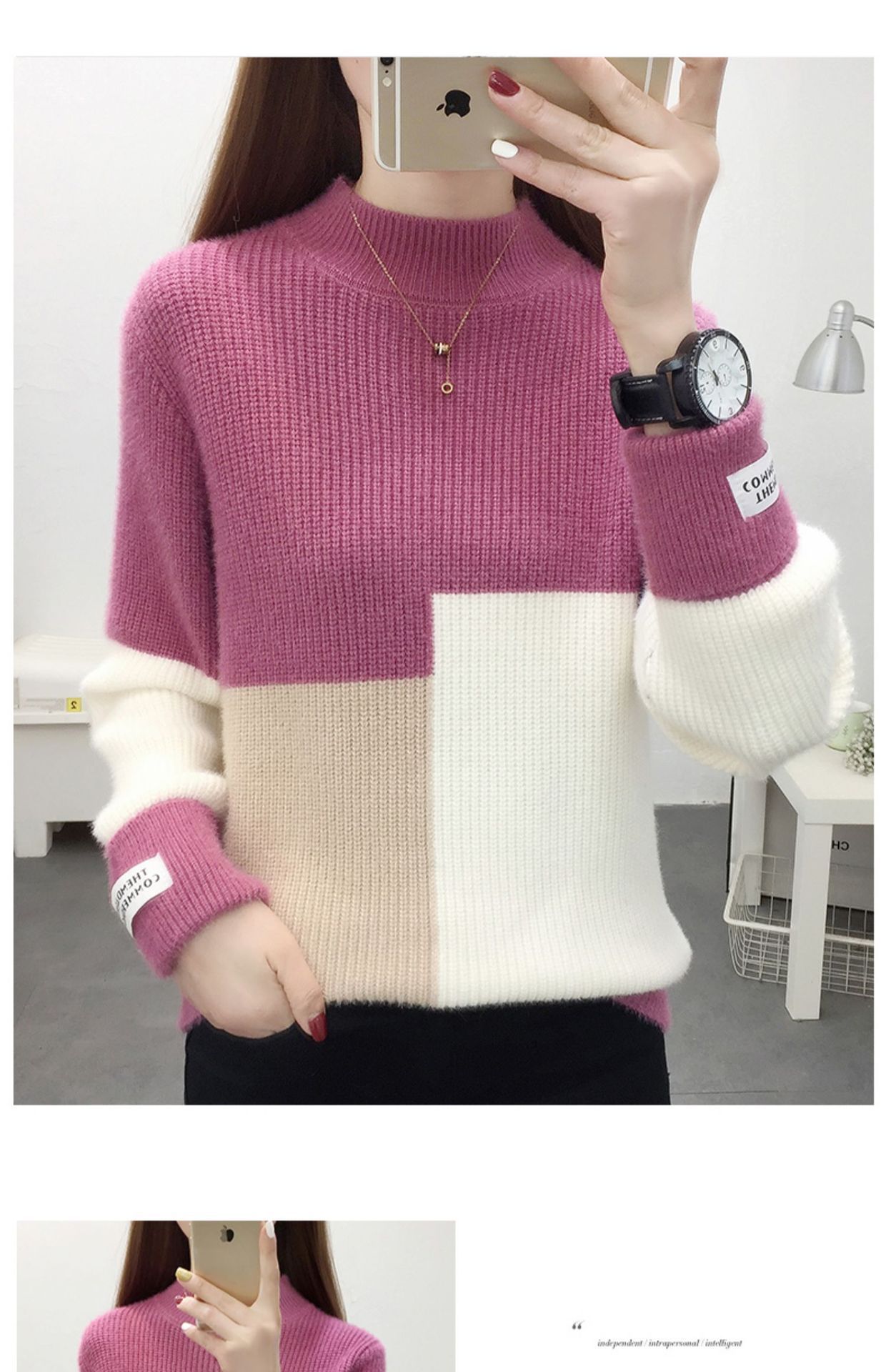 高襟セーター女性の高級日韓シンプルな純色プルオーバー2023早秋高級感ニット