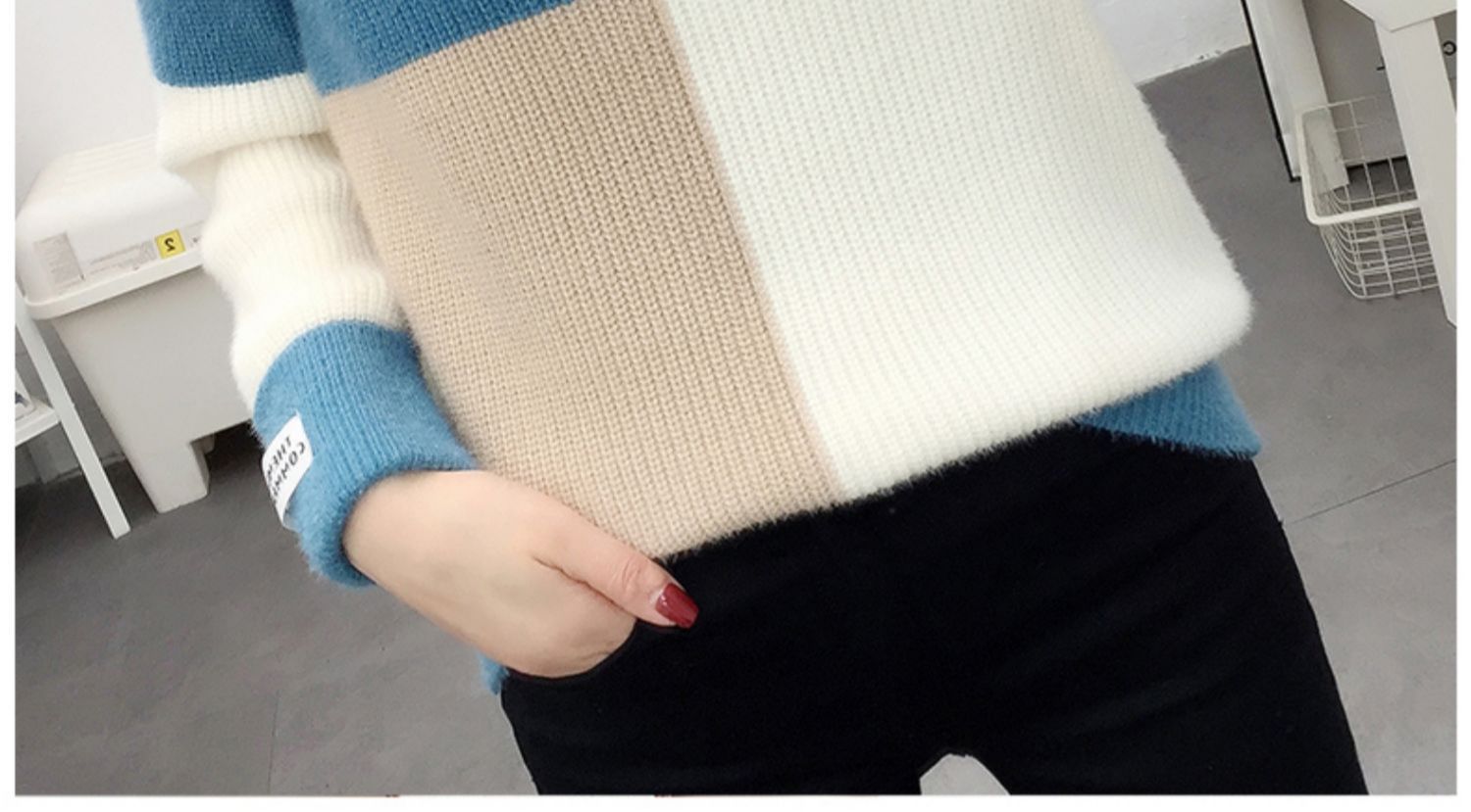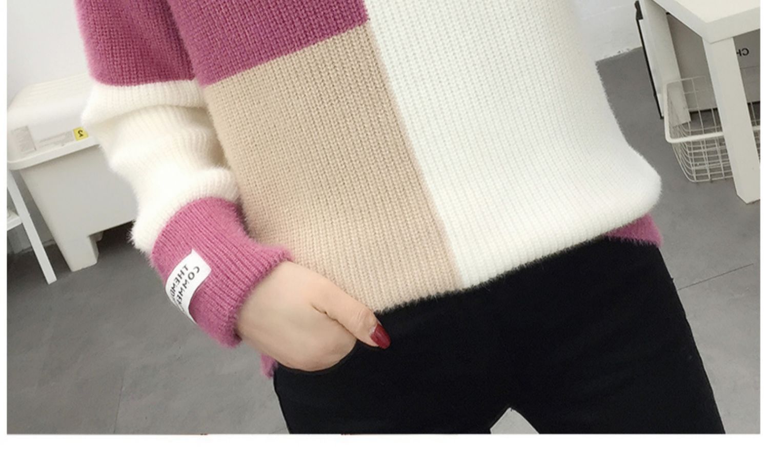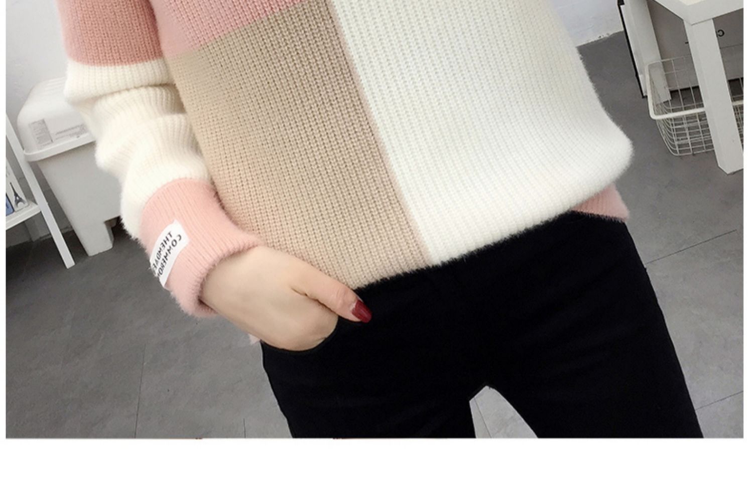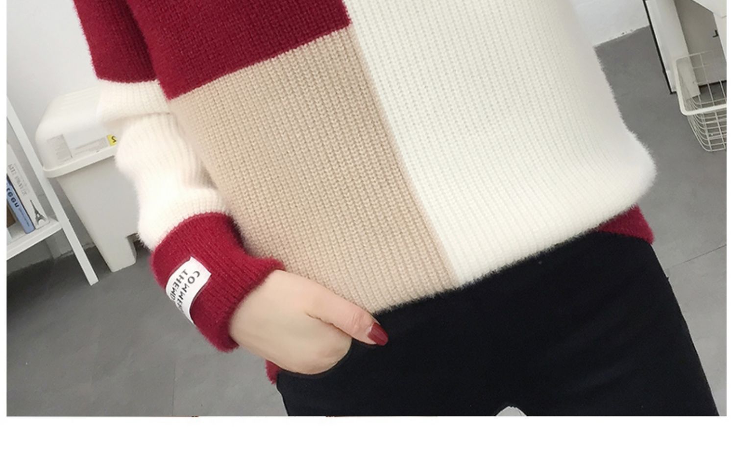2024秋冬韓国版vネックがゆったりしていて、怠惰な風があります。